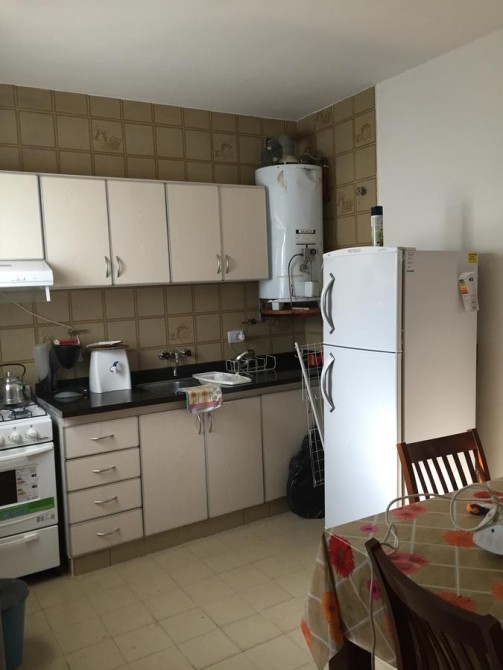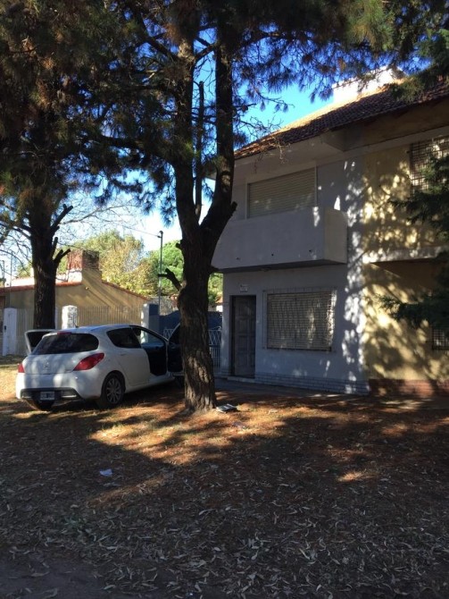 En planta baja, un living amplio con hogar ofrece un espacio acogedor, junto a una cocina comedor equipada con artefacto de cocina, heladera y termotanque.